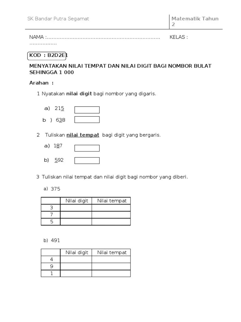 Contoh soalan matematik tahun 2 akhir tahun kabar blok. Latihan matematik kids math worksheets fun math .